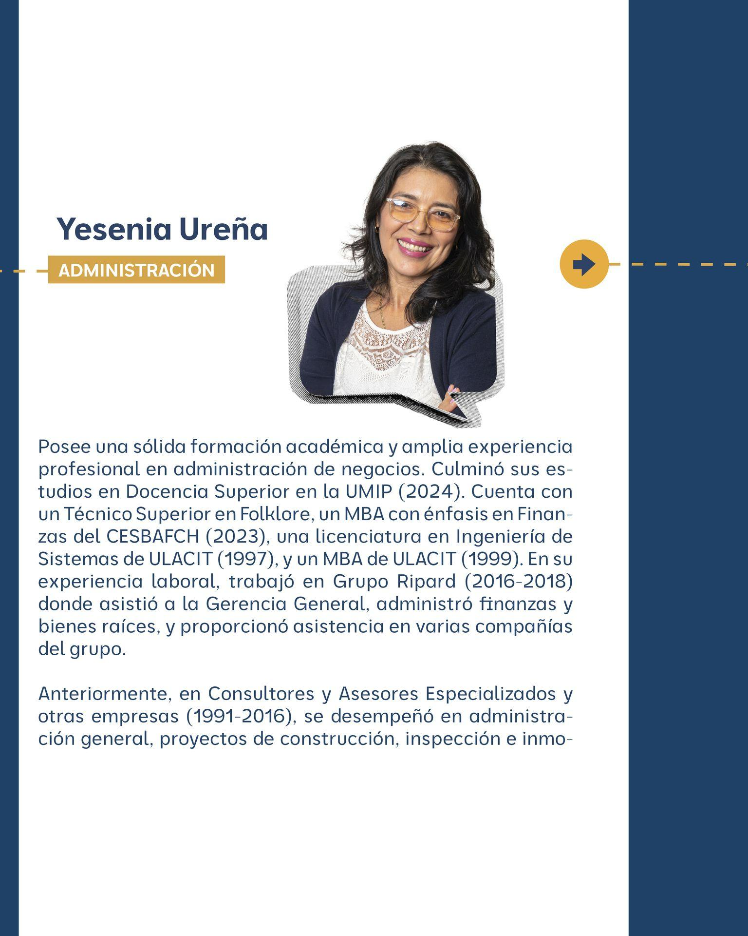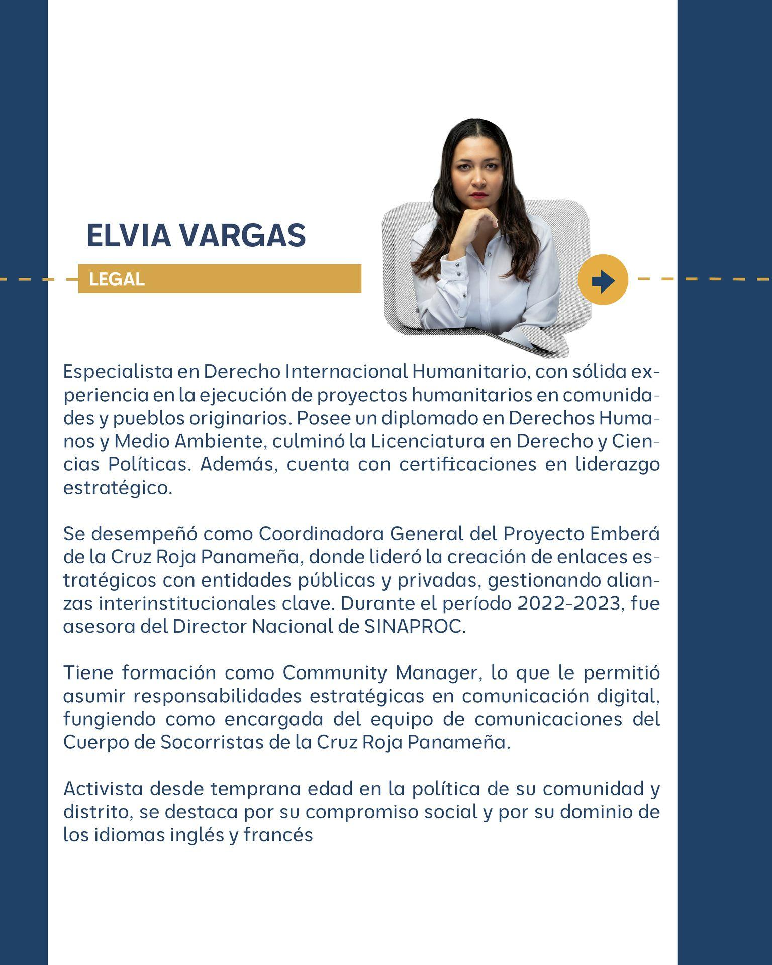 Abogada egresada de la Universidad de Panamá, con posgrado de la Universidad de Salamanca y Maestría de la Universidad Carlos III de Madrid. Cuenta también con una especialización en Docencia Superior de la Universidad Marítima de Panamá estudios de Máster en Gestión y Auditoría Ambiental por parte de la Universidad Internacional Iberoamericana. Cuenta con Diplomado Internacional en Liderazgo y Estrategias Electorales para Mujeres, cursado en la Universidad Latina. Titulada del Global Competitiveness Leadership Program, Georgetown University, McDonough School of Business, Washington DC, Estados Unidos de América.